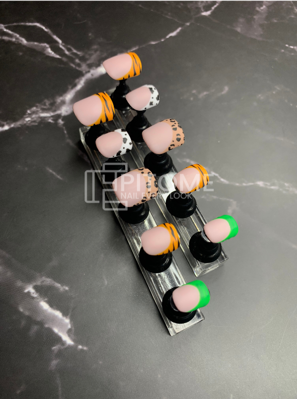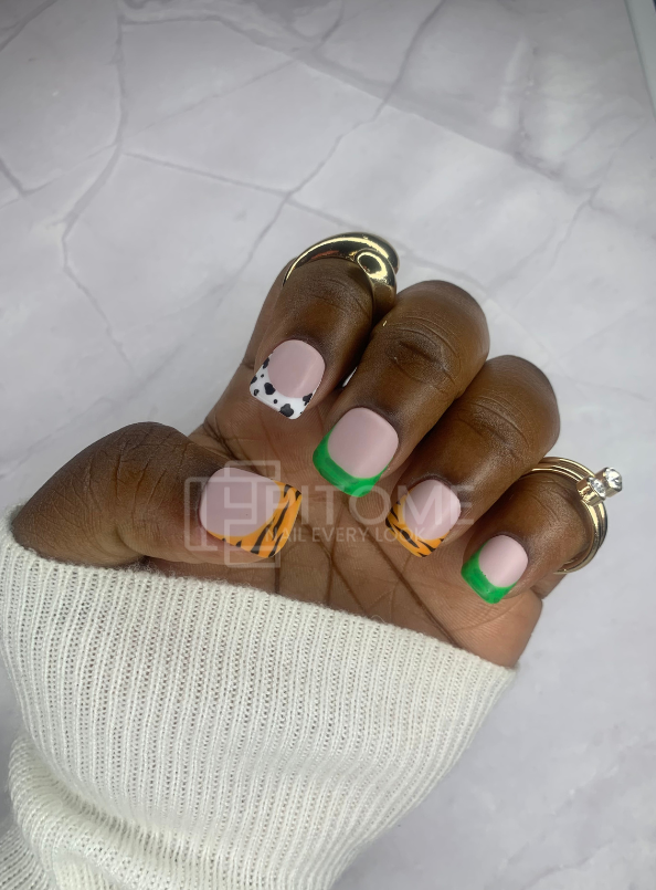 Nude Press On Nails With Animal Prints | Square Shape
