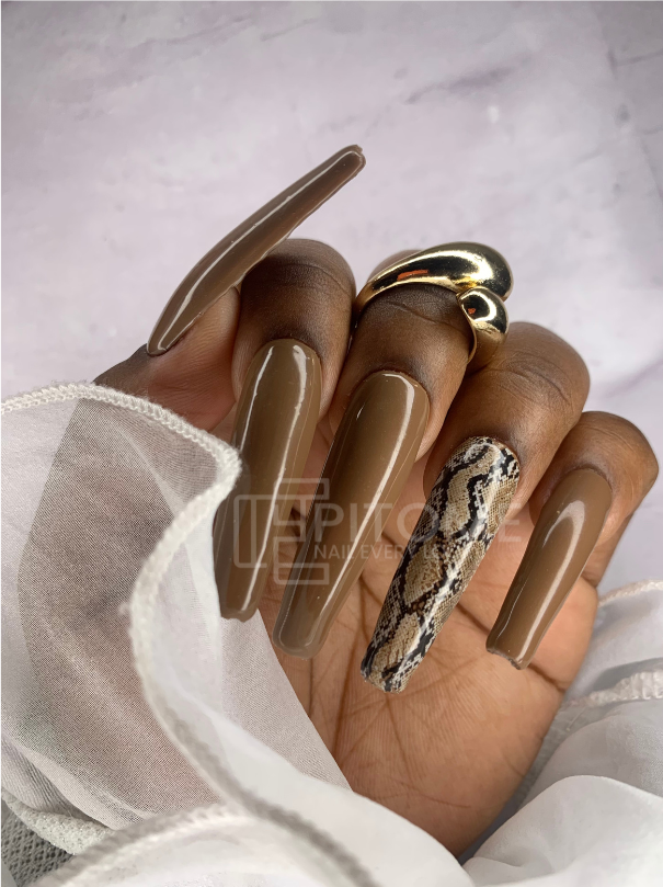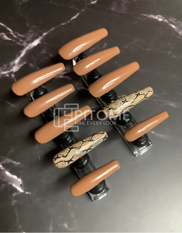 Brown Press On Nails With Reptile Print | Ballerina Shape