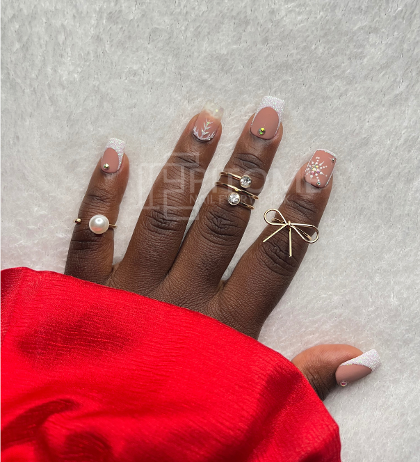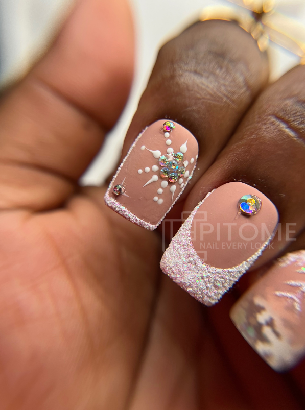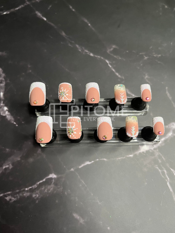 Matte Press On Nails With Snow Flakes and Rhinestones | Square Shaped