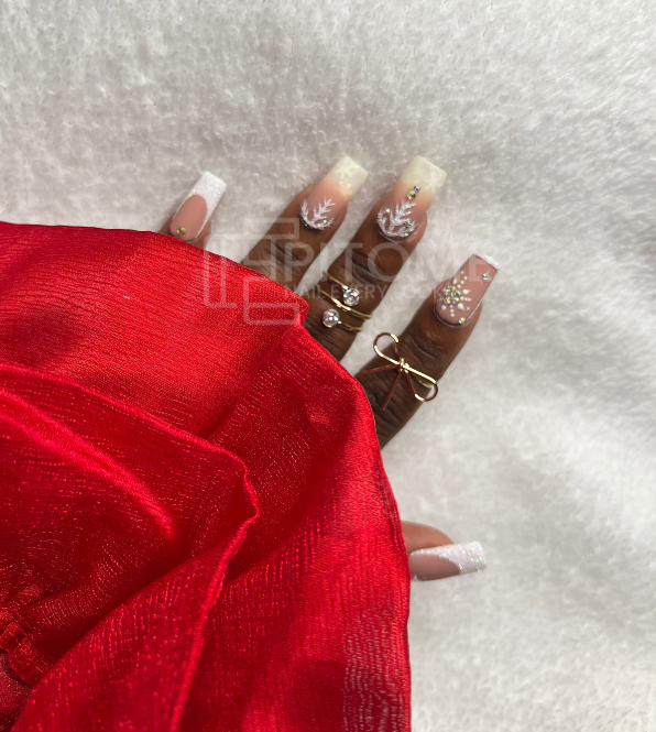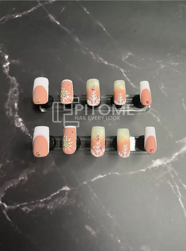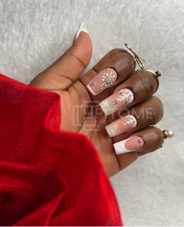 Matte Press On Nails With Snow Flakes and Rhinestones | Square Shaped