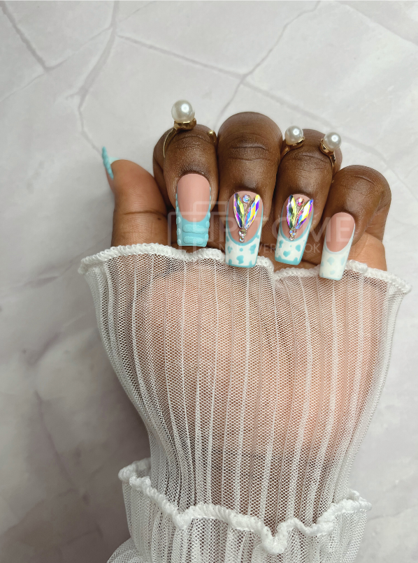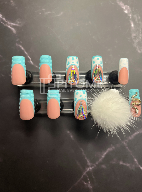 Pink Press On Nails With French Tips and Cow Prints | Square Shape